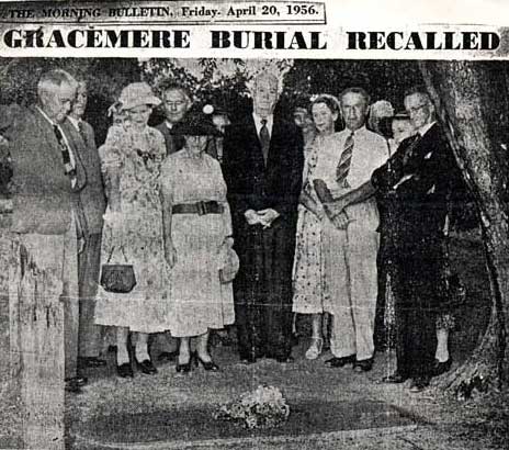 Her brother Walter became the 4th Laird, and had a long career with the East India Company Civil Service. He joined at eighteen and served for forty years. In 1837 he became private secretary to Lord Elphinstone, Governor of Madras, some of whose letters are preserved in Wynne's diary. (Elphinstone was Walter's uncle by marriage, having married Janet Elliot in 1806). Of the other members of the family, two brothers decided to seek their fortunes in Australia rather than joining the armed forces or the church, which was the usual fate for younger sons. William Thomas (known as Hobby), born in 1812, died in Munich in 1890, but his younger brother George Mackenzie, born in 1822, died out in Australia much earlier in 1856. The two men arrived there in the early 50s, and purchased a large block of land in what is now Queensland, near Rockhampton. The land was named Lower Johngboon, and consisted of 16,640 acres which were estimated to be enough for 4000 sheep. The exact description reads as follows: George died on 17th April 1856 at Gracemere and was buried in the garden at the Gracemere homestead, owned then and now by the Archer family. His burial, marked by a stone, is apparently the first European burial in that area, as Rockhampton was only a year old. In 1956 on the hundredth anniversary, the local historical society held a ceremony and laid a wreath on the grave. The inscription is still quite clear: In Memory of George Mackenzie Elliot, fifth son of the late James Elliot Esquire of Wolflee (sic), Roxburghshire, Scotland. Who died at Gracemere, Fitzroy River, on the 17th April 1856 aged 33 years." When Thomas died in 1890, he left a small legacy which paid Eleanore £50 a year. Eleanore married Herman Freyherr von Poellnitz in 1841, and you can read about her in the Family section of the diary. She died in 1915.